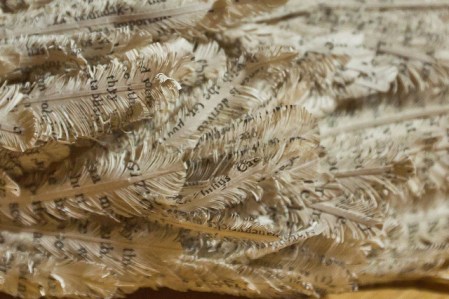 This sculpture is crafted from a copy of Ian Rankin’s Exit Music. The tag read: “For @natlibscot – A gift in support of libraries, books, words, ideas….. (& against their exit).”