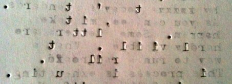 One interesting outcome that you’d never see with modern printers were the dents. I had to strike the keys so hard, they dented the paper. In a few spots they even created holes. Here’s a picture of the backside of the paper.