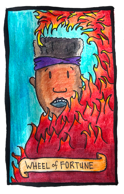 Luke stood up beside the shattered front door. “This didn’t have to happen.” The Wheel of Fortune card lay on the carpet, a miniature tornado of flame spinning out of it. Auntie Jo slumped to one knee as the fire enveloped her entire body. Kassandra couldn’t look away. If she blinked, Auntie Jo would disappear forever.