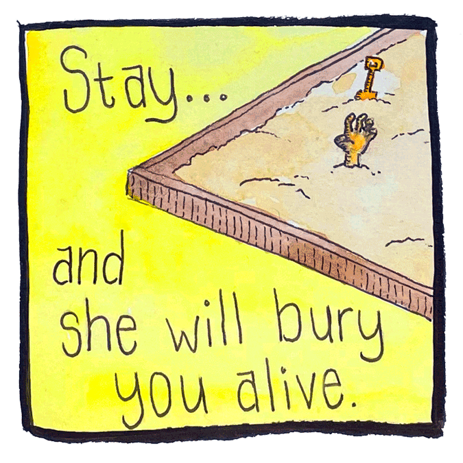 There is something about this myth that unnerves me. I think it’s the sound of the woman digging in the sand. I can imagine the quiet of the park. Realizing that you’re all alone. And then the crunch of the sand. First the footsteps and then her fingers, clawing through it. Creepy.