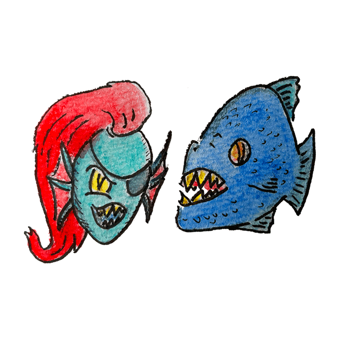 These fish also share Undyne’s personality, a ferocious determination to attack. However, piranha work in packs. Undyne needs no other help.