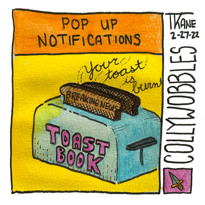 Pop Up Notifications Mar20 My phone talks too much and my toaster not enough. We should have dumb phones and smart toasters. Tim Kane