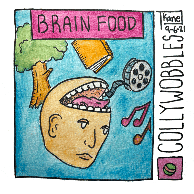 I love puns of any sort. Match that with a zeal for the surreal, and you get a head that opens up like a mouth to eat food. Specifically consumables that will jolt your creative side into action.