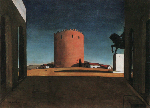 La Torre Rosa 1913. This was painted during de Chirico’s stint in Paris. You can see the long shadows that characterized his work.