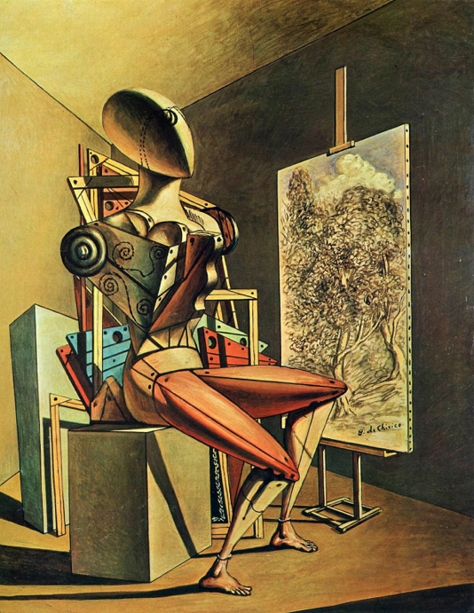 The Predictor 1919. Landscapes weren’t the only subject de Chirico painted. He often included these mannequin creatures with oblong blank heads.