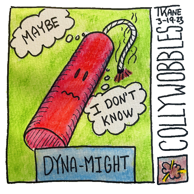 Dyna-Might Apr2 What if dynamite had a mind of its own. A wispy-washy personality. Then you’d have dyna-might. Tim Kane